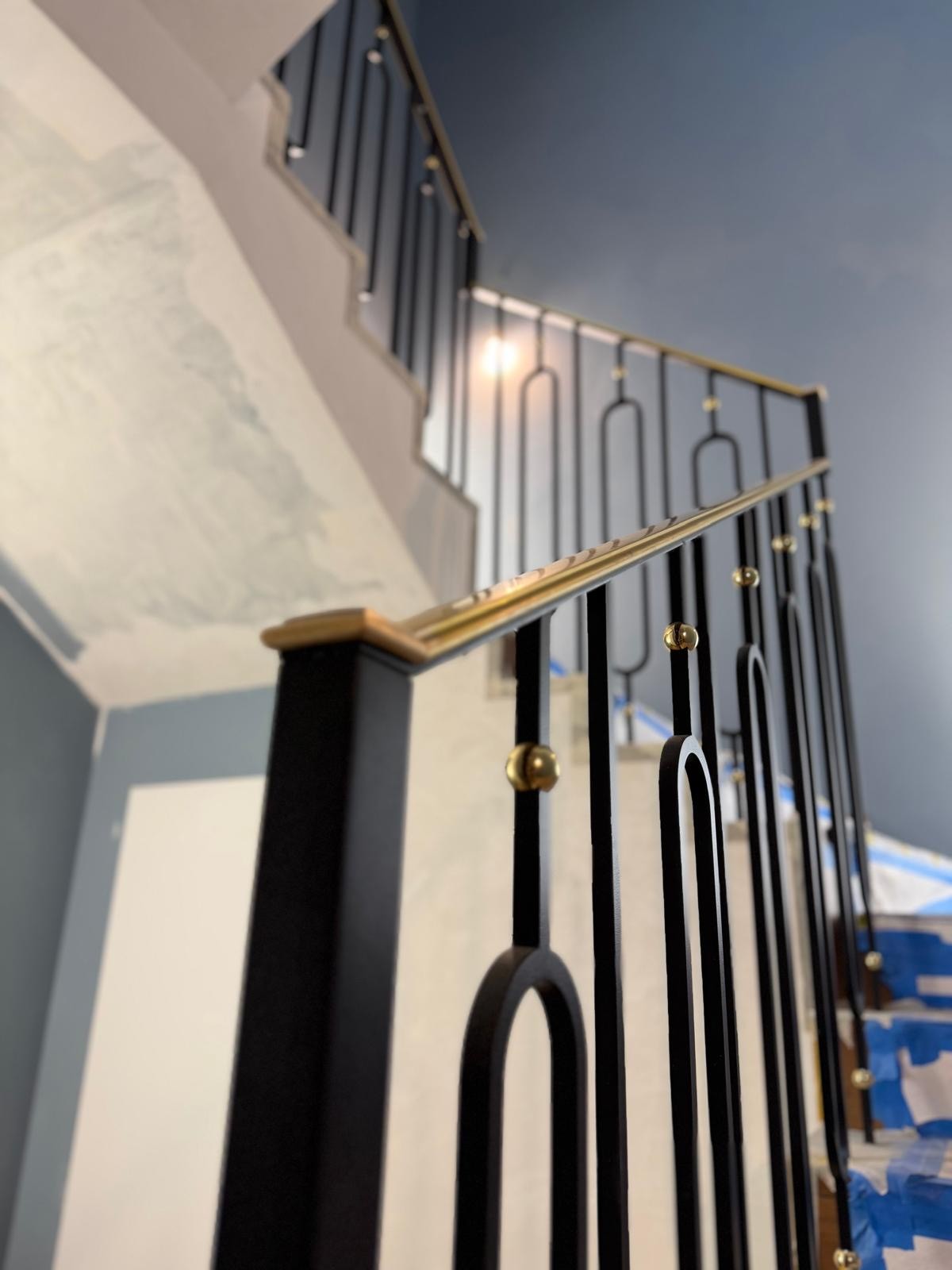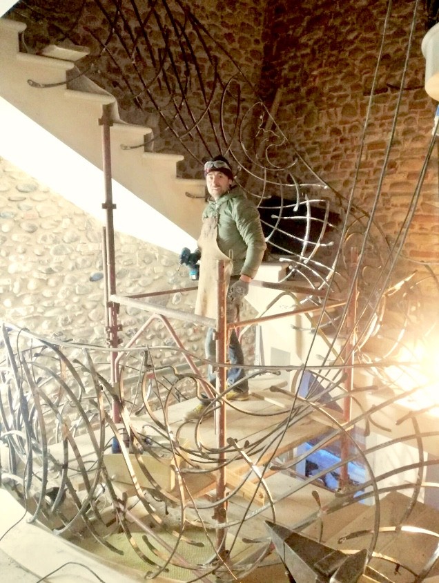 The wrought iron balustrade was then constructed around this reference structure, allowing full control over proportions and curves. This working method, also applied to international projects, makes it possible to bring the client’s staircase into the workshop, ensuring precision, craftsmanship quality, and reduced on-site complexity.